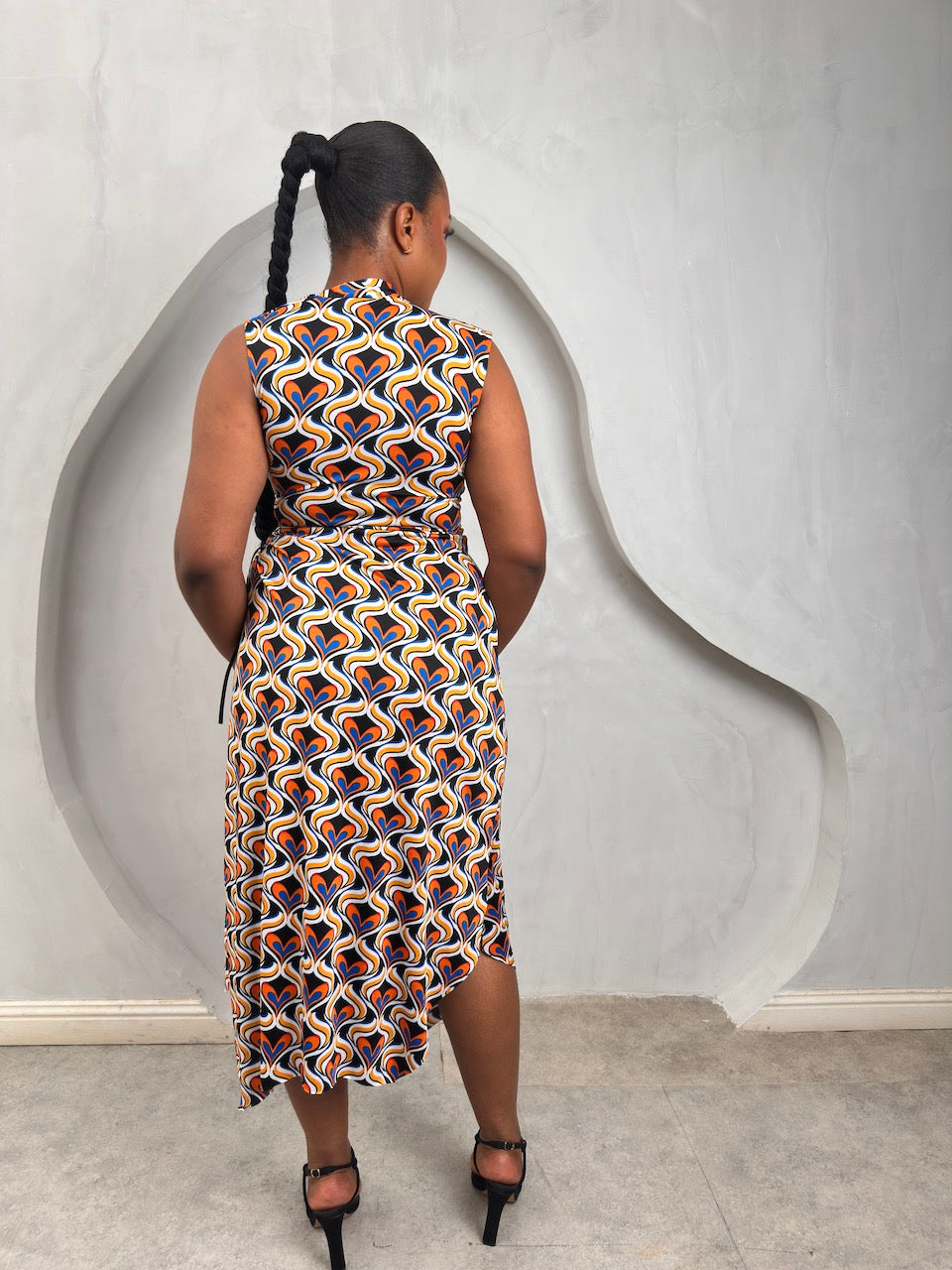 Flattering side cut out jersey dress. Adjust string to reveal cut-out as needed.
