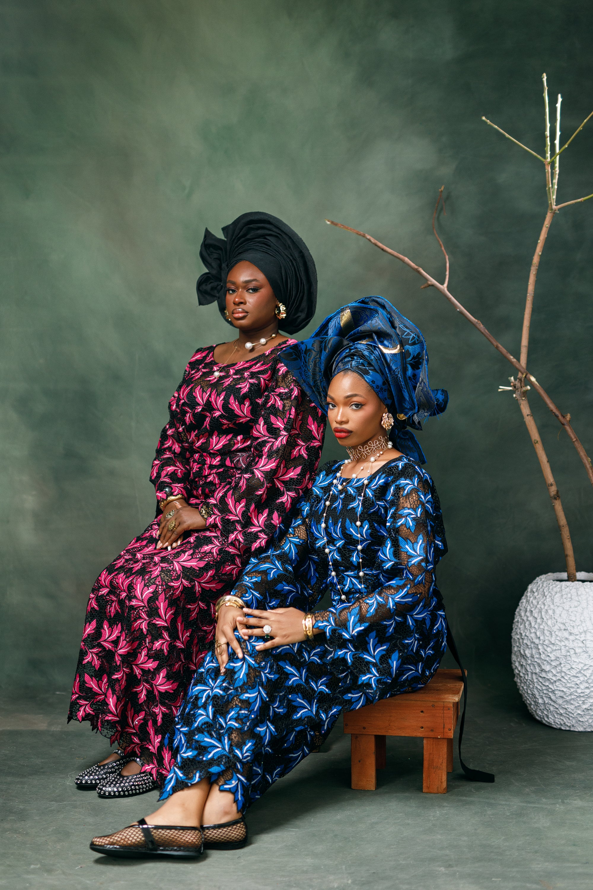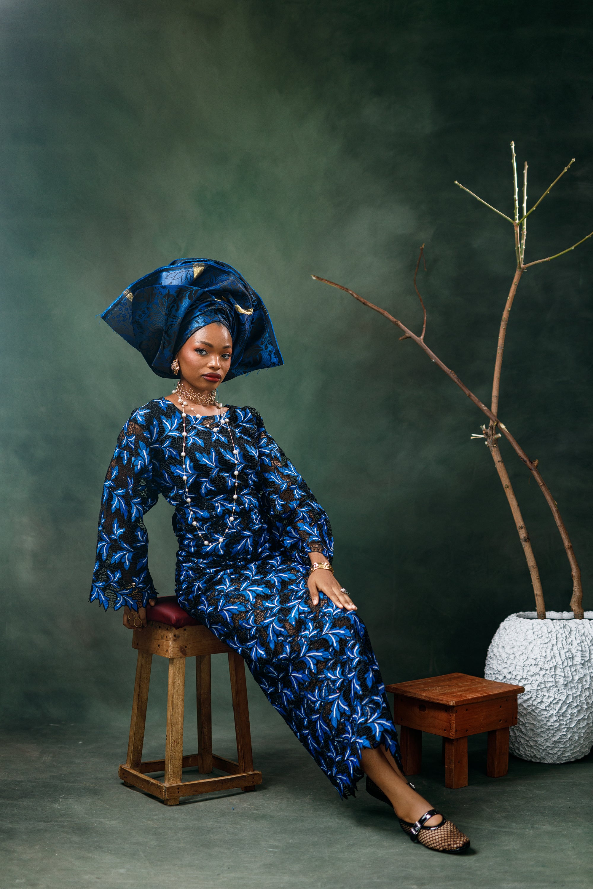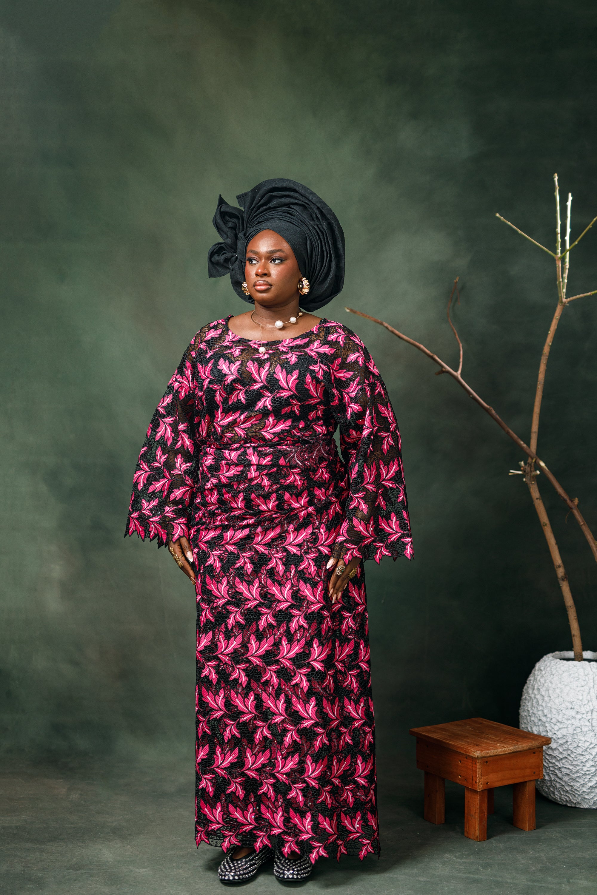 Vintage Style Chord Lace Buba (Blouse) and Wrapper Set.